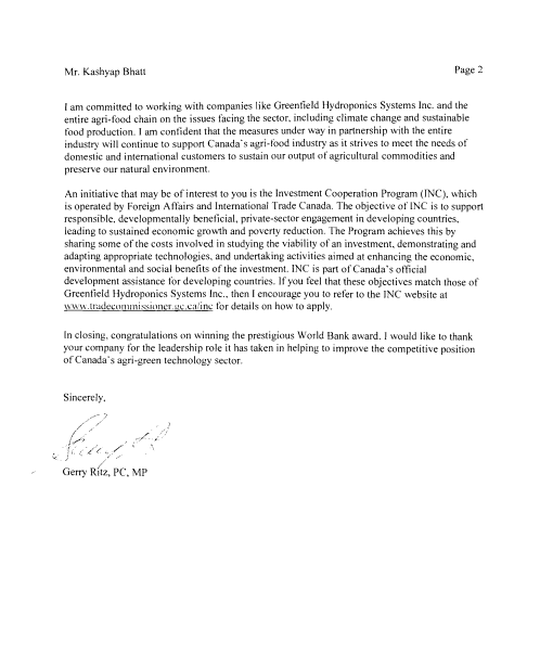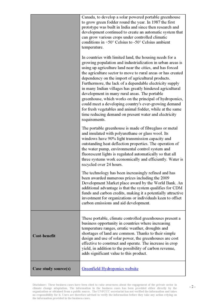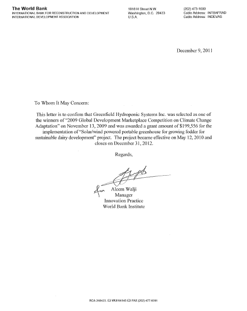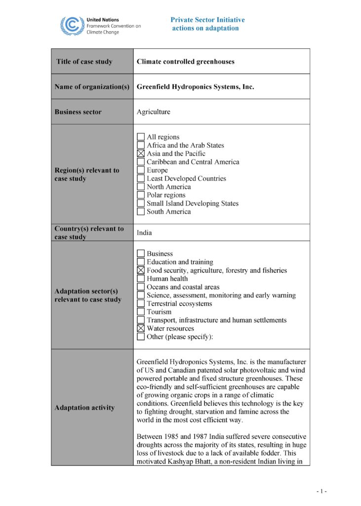 UN Climate Change Office - Greenfield Hydroponics Systems