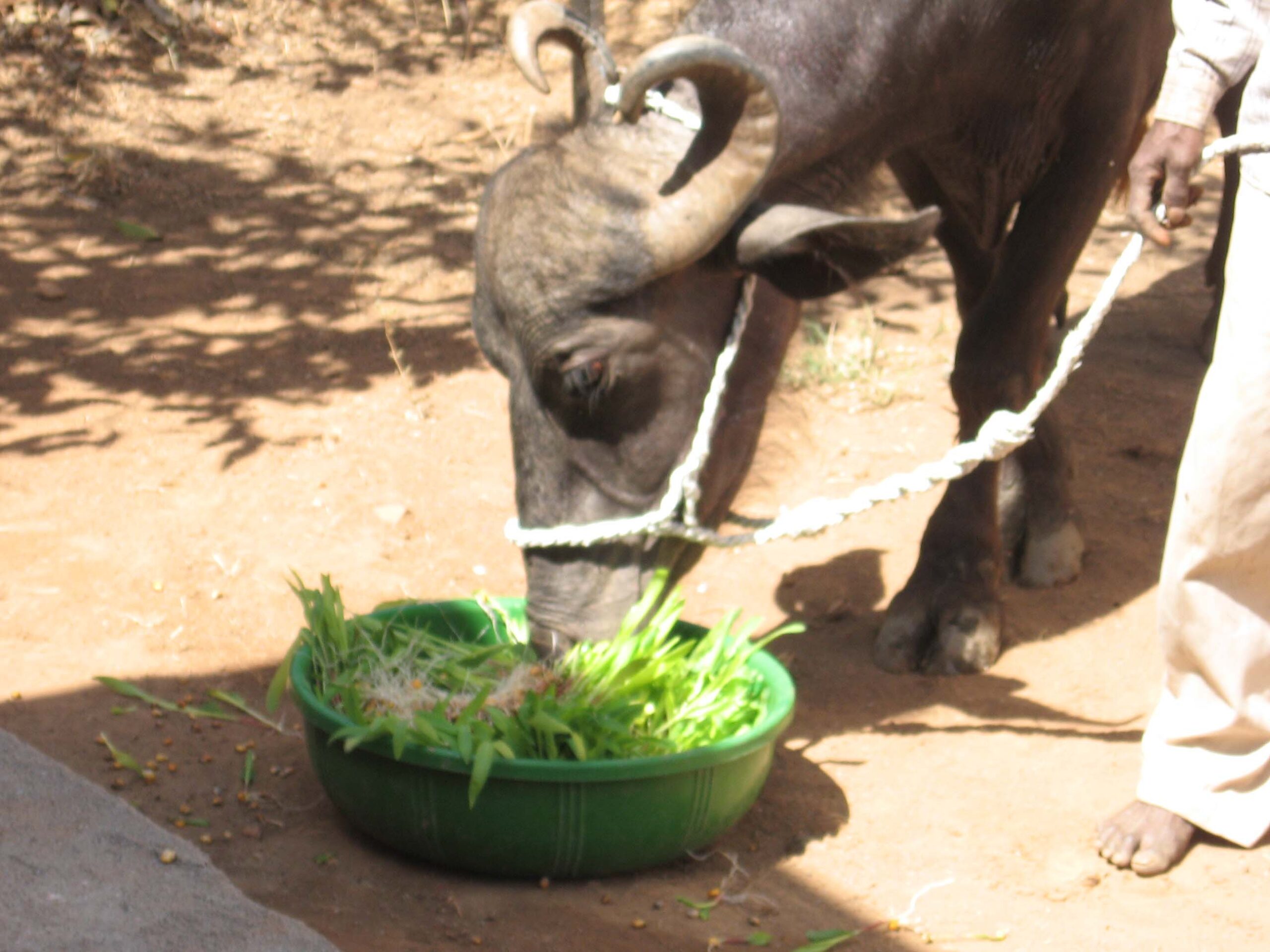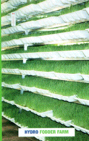 The portable greenhouse is made of fibreglass or metal and insulated with polyurethane or glass wool. The inner walls are made water resistant. The greenhouse model GF1000 measures 35′ long by 10′ wide by 10′ high. Portable greenhouse uses 350 square feet of waste land and produces green grass equivalent of 25 acres of agricultural land. The greenhouse has fixed windows made of ploy carbonate sheets on three sides. Poly carbonate has 90% light transmission capacity and outstanding heat deflection properties. During the day this area receives full sun light for photosynthesis. At night, artificial light is provided by fluorescent lights so that photosynthesis, and therefore, optimum growth, takes place. The number and positioning of the plastic trays which hold the plants can be varied according to the crop to be grown. In GF1000 model “Hydro Fodder Farm” to grow fodder and “Hydro Forest Farm” 600 trays and in “Hydro Baby Greens” 500 trays are provided. Watering is provided either by sprinkler or drip irrigation, depending on the crop. The Portable greenhouse has one door for the access. The operation of the water pump, environmental control system and fluorescent lights is regulated automatically with a timer/sensor switch so that all three systems work economically and efficiently. We recycle water for 24 hours. The electricity required to operate greenhouse is produced by Solar photo voltaic modules and stored in a battery bank for non sunny time of the day(s). This portable greenhouse is also available in 110 / 220 Volt where heating system is provided